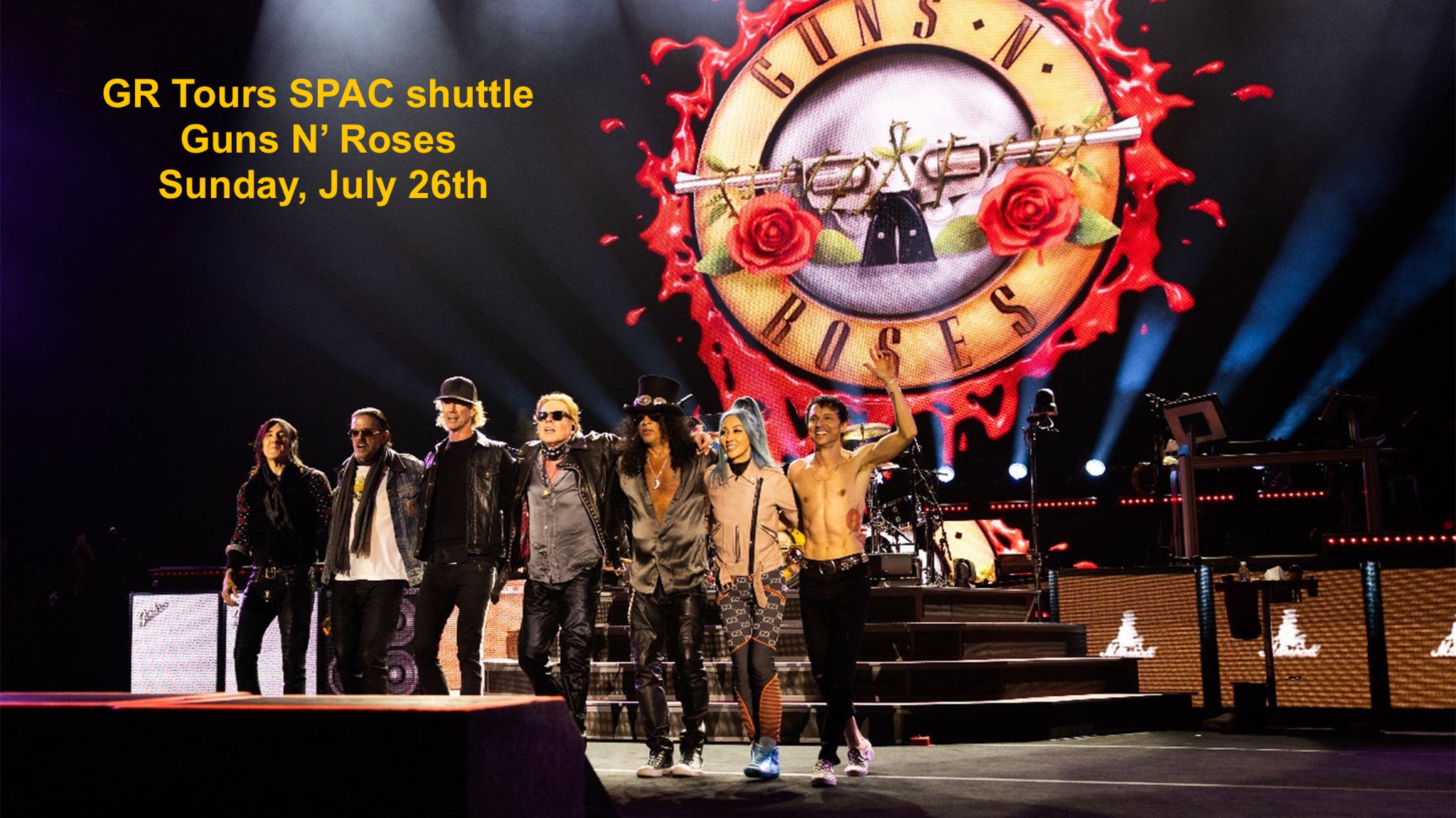 GR Tours SPAC shuttle to Guns N’ Roses, Sunday, July 26th To respect both your time and ours, we are streamlining our booking process to make it as efficient as [...]